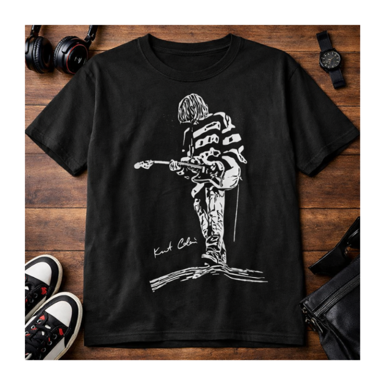 Kurt Cobain Guitar Graphic T-Shirt | Vintage Rock Band Style Tee | Unisex Streetwear Shirt