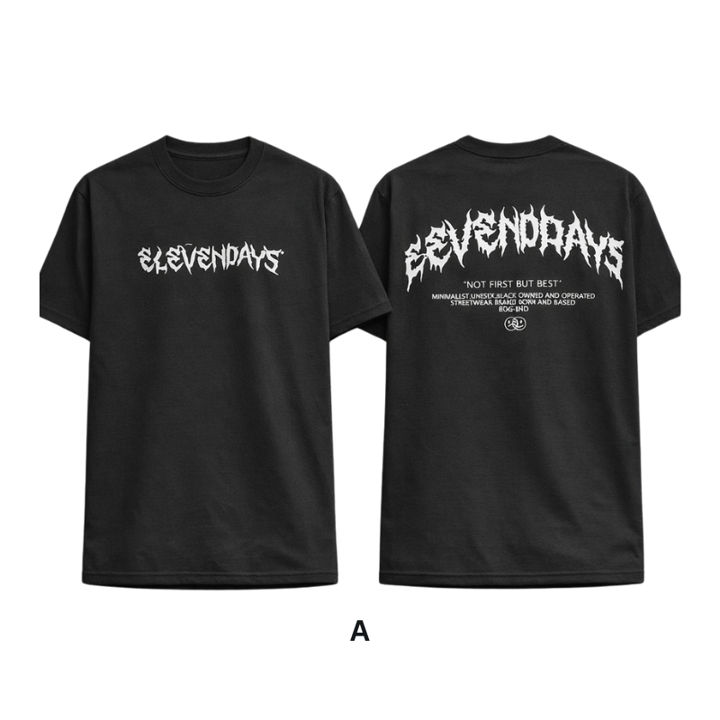The Elevendays Signature Street Tee delivers bold minimalism with a powerful streetwear edge. Designed in classic black with striking white graphic typography, this piece represents identity, culture, and confidence.