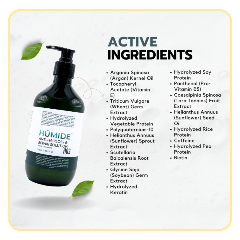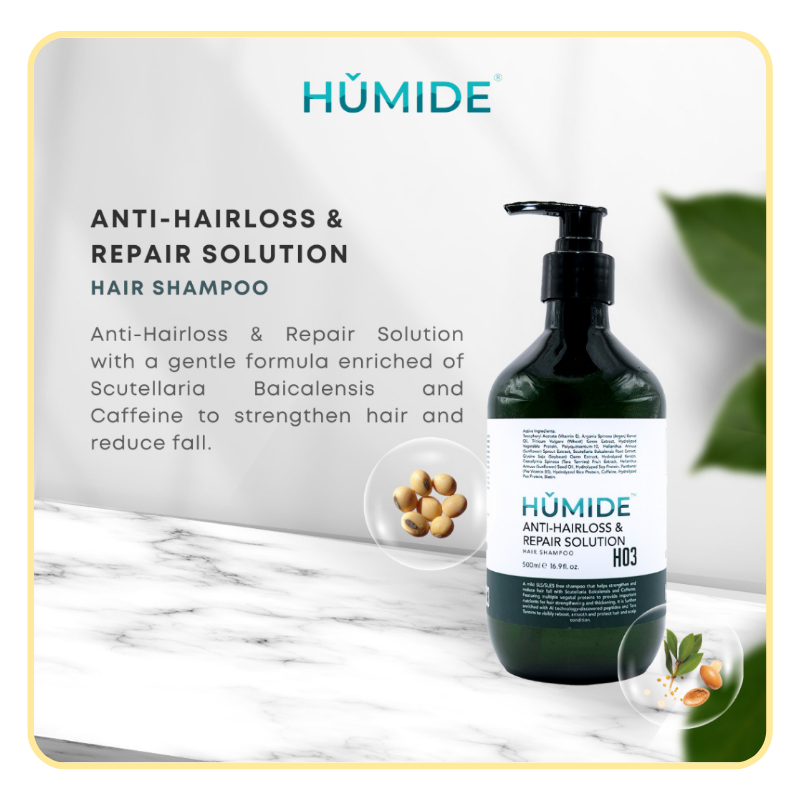 HUMIDE H03 โ Anti-Hair Loss & Repair Solution Shampoo is a powerful daily formula that targets hair fall at the root level. Combining ancient herbal extracts with modern scalp science, it helps restore strength, shine, and density from your very first wash.