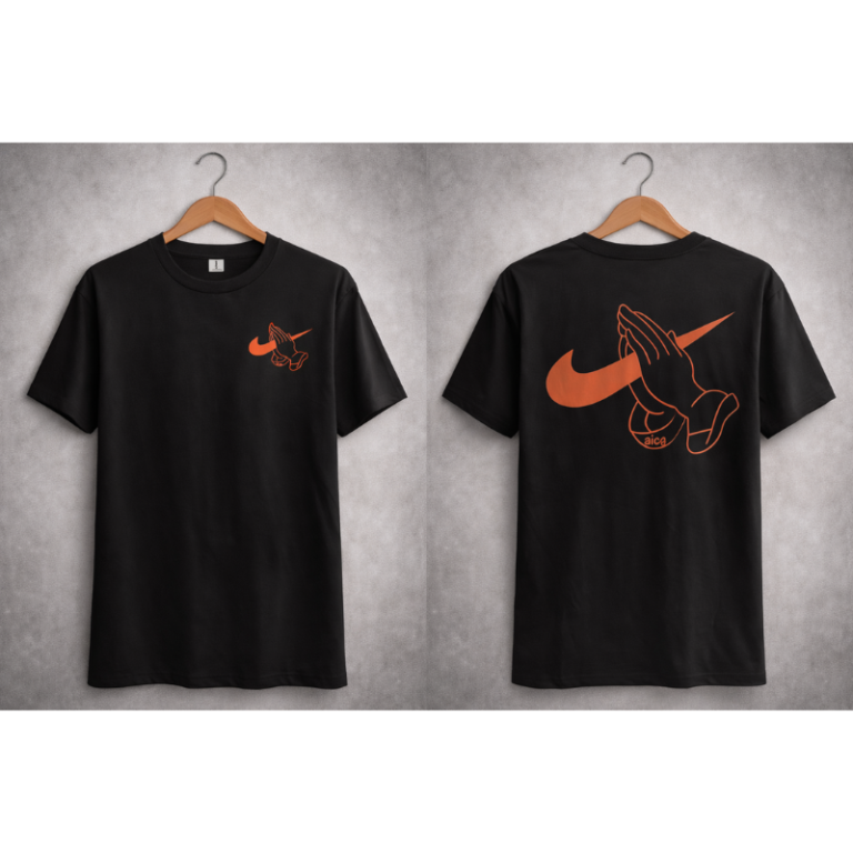 Premium Cotton Graphic T-Shirt – “Pray Swoosh Design” Front & Back Black Tee