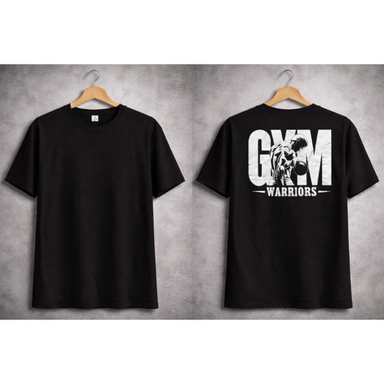 Premium Cotton Graphic T-Shirt – “GYM WARRIORS Back Print” Black Tee