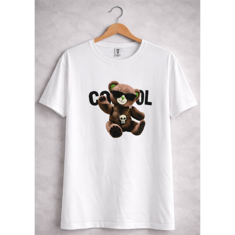 Premium Cotton Graphic T-Shirt – “Cool Bear Street Design” White Tee